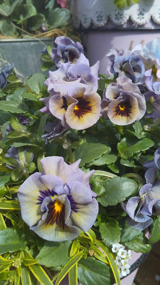 寄せ植えにしてあるビオラ キャンディウェーブ