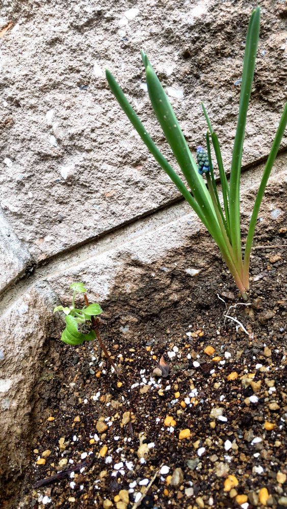 思い立ったが吉日♪さんの小さな庭,ムスカリ,クレマチス‘ベルオブウォーキング’の投稿画像