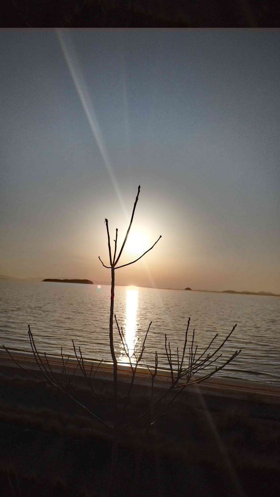 お日様が神々しく、穏やかな海に映った、光のみちがキラキラ✴していますね🙆