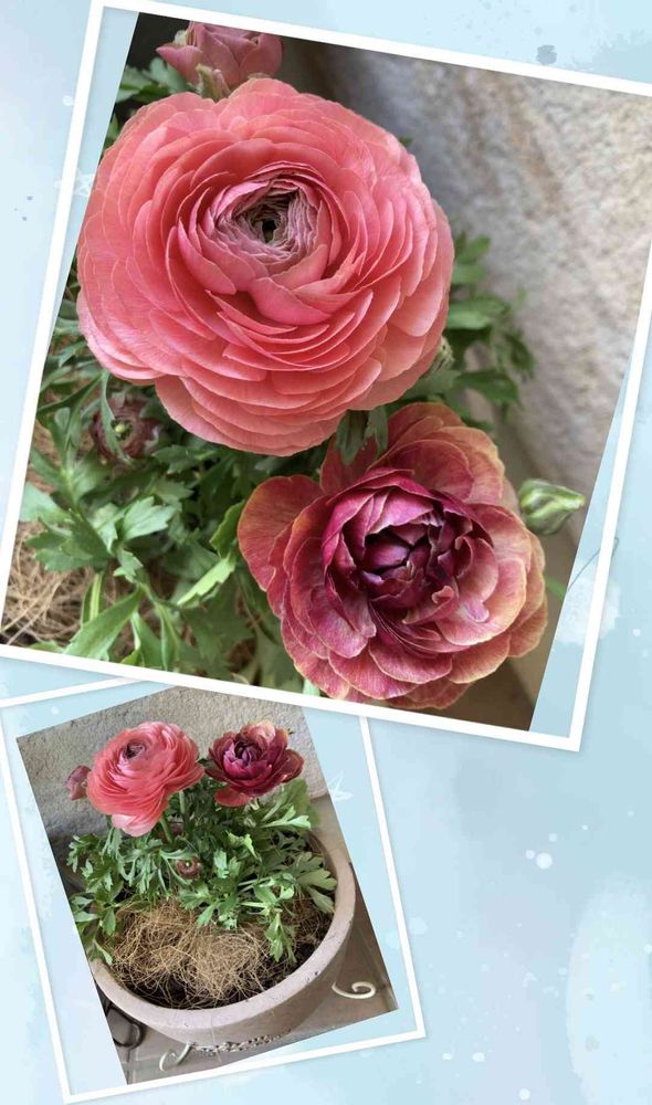 可愛いピンクとシックな大人可愛いラナンキュラス💓2色入りなのかな?