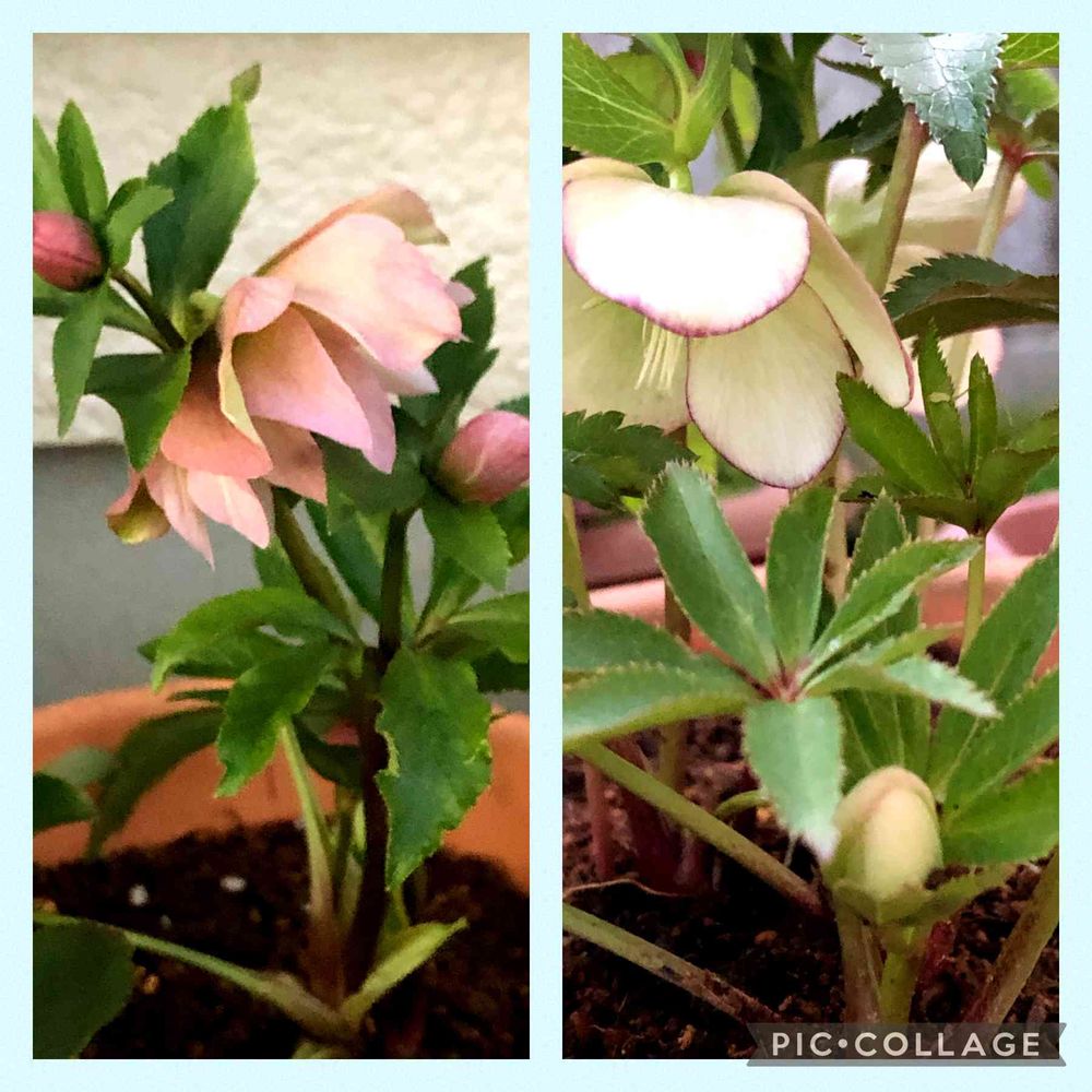 この間、産直売り場で購入したクリスマスローズ2株、素焼きの鉢に植え替えました💕