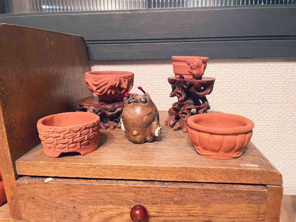 最近、山野草を始めました。旦那は盆栽、私は下草を学び始めました。 自宅で陶芸しています、豆鉢など作っています。の