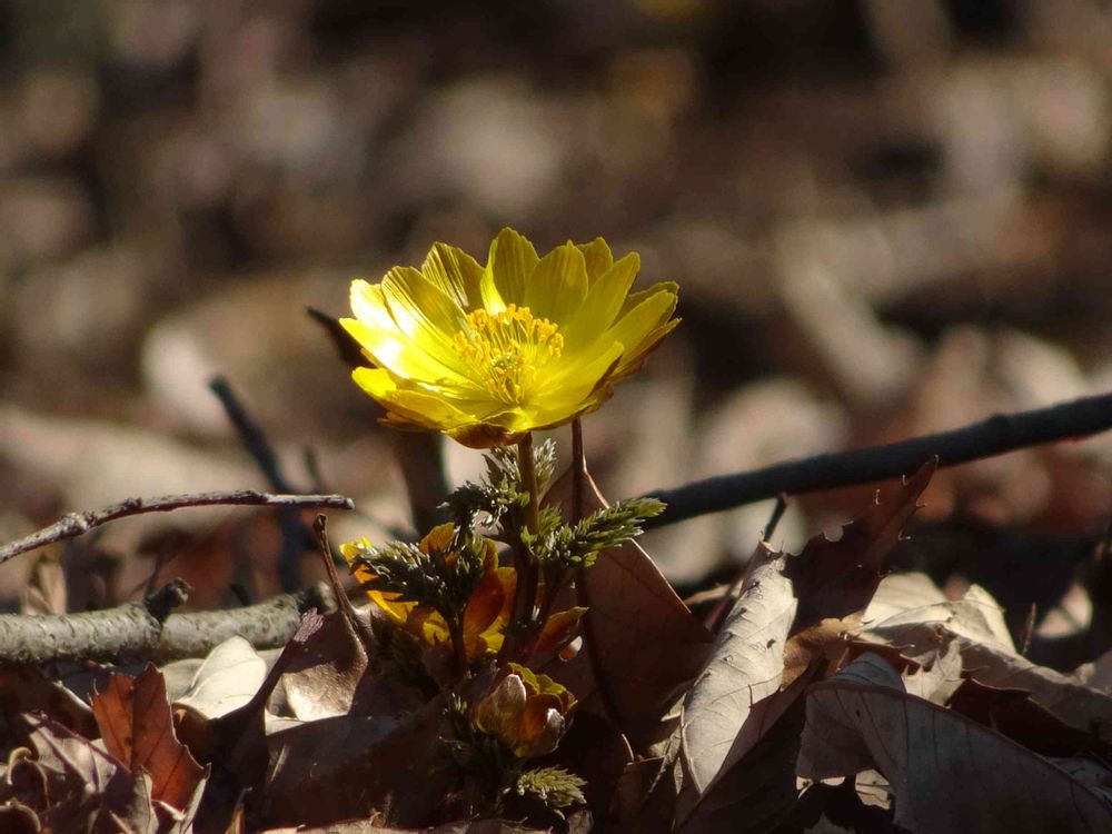 フクジュソウ(福寿草)、キンポウゲ科フクジュソウ属の多年草