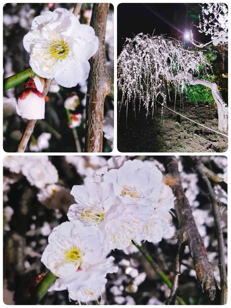 玉縄桜のライトアップを見に行ってきました。梅の花もライトアップされてました。