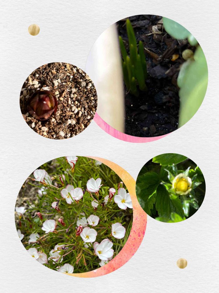 ユリ、トリテレイア ルディの芽吹き、ワイルドストロベリーも花が😊