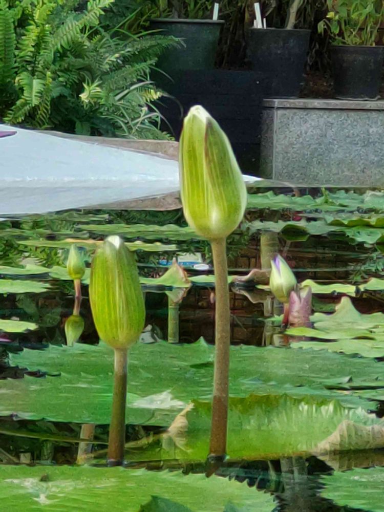 手前のは蕾と葉の形状から夜咲の熱帯睡蓮ですね(*´∀`*)