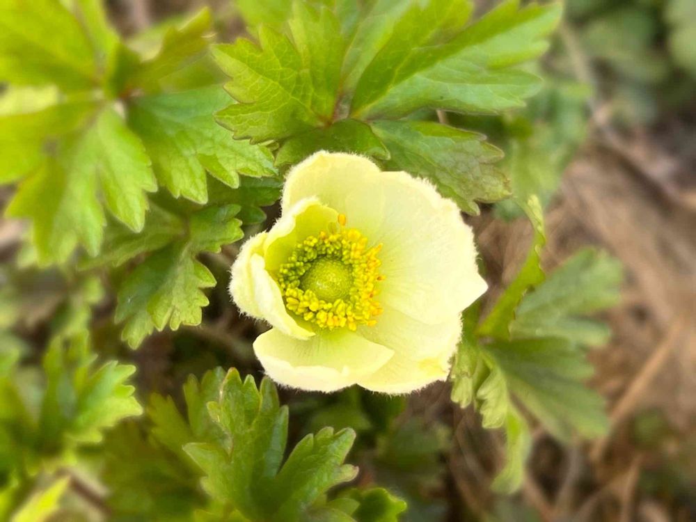 アネモネ・シルベストリスは原種のアネモネのひとつ。アネモネというと球根の花が一般的ですがシルベストリスは宿根草です。