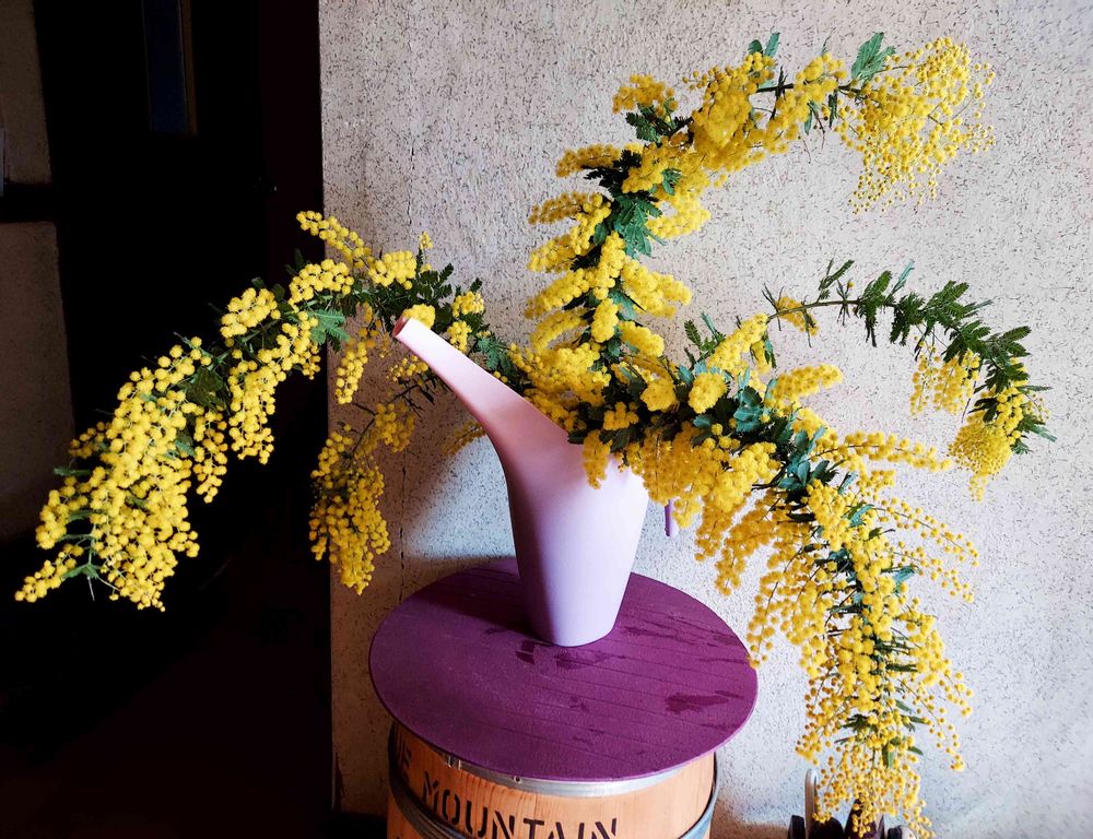 水差しに生けていた蕾の切り枝ミモザ💛💛💛も満開になって🌟垂れて重そうです😅