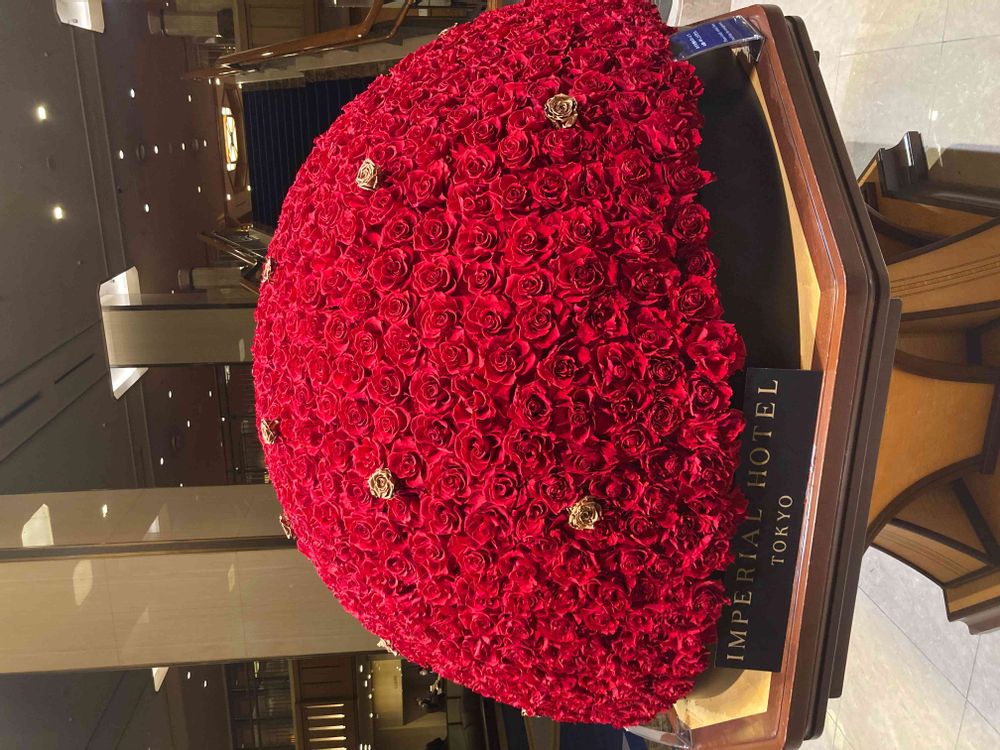 おはようございます😊バラ、都内ホテルロビーにて。なに、コレっ〜‼、🌹🌹🌹✨ぴょんぴょん🐰銀ブラした帰り道、目の保養しました👍😊🎶