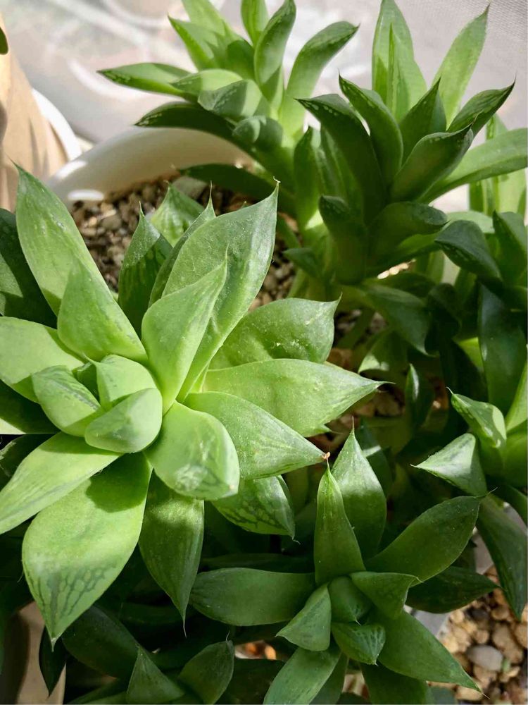 大分前に娘婿に貰ったハオルチア宝草が子株もいっぱい出来て、翡翠色の樹林⁉️のように茂って来ました🤗🌿💚🌿