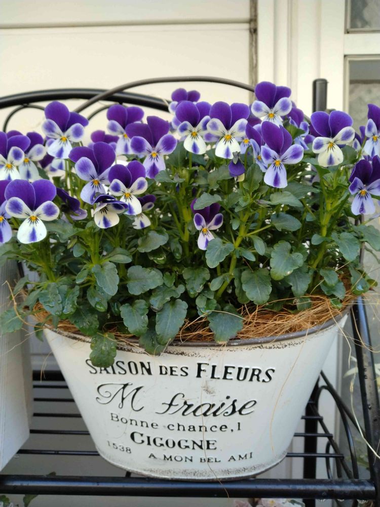 ビオラとブリキ鉢は相性良いと思いますよ😘