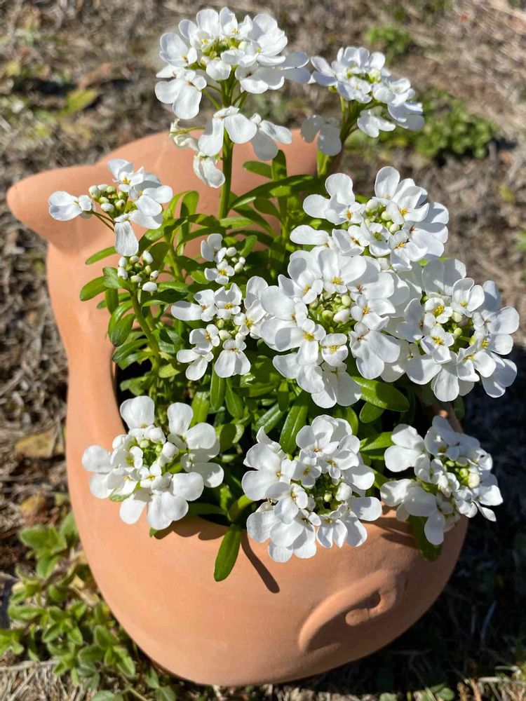 かわゆい🐷さんの素焼き鉢にイベリス✨🤍