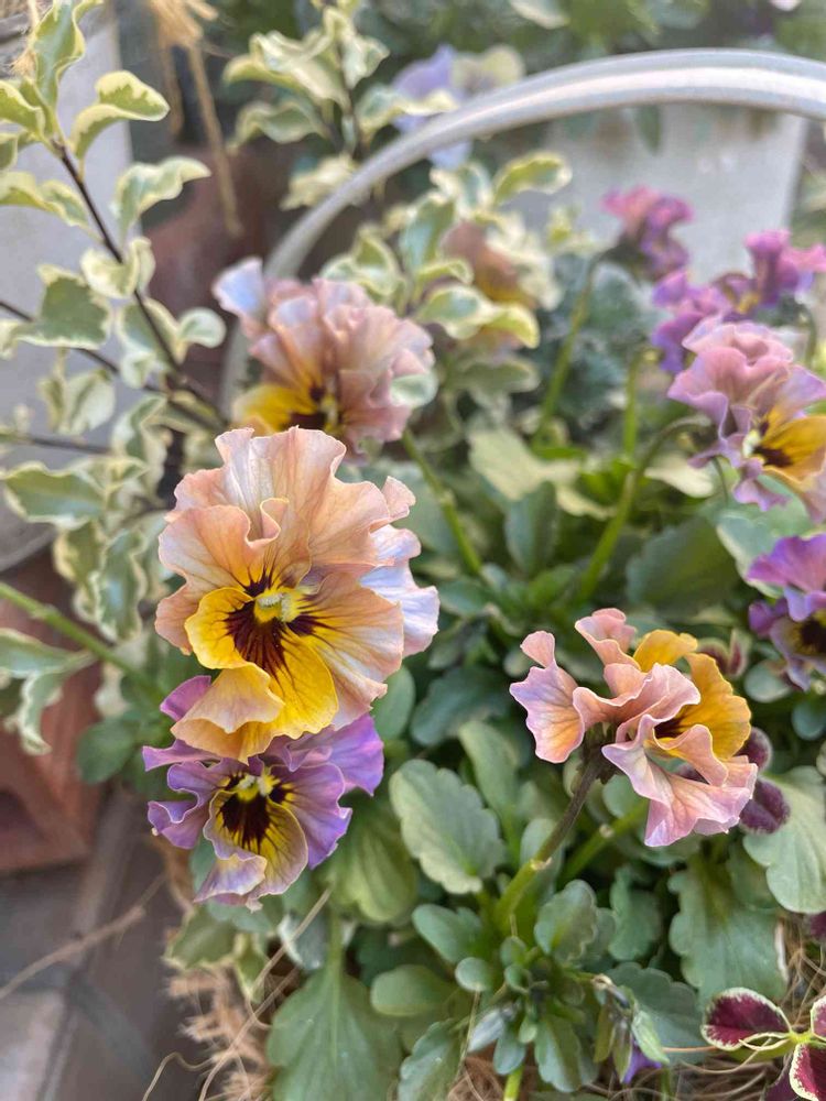 寄せ植え鉢のビオラ レディがとても綺麗に咲いてきました😄🙌