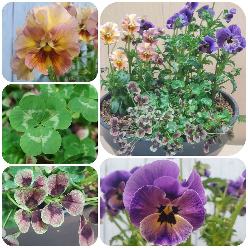 寄せ植えです💠ビオラとクローバーがカラフルで可愛いいです🍀💛💜