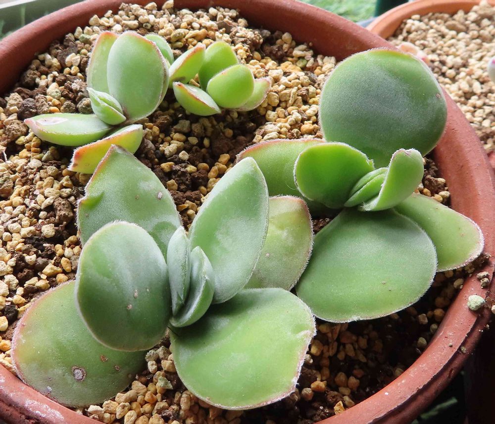 葉を2枚だけもらって,葉挿しで増やしたクラッスラのデュビア。しばらく名前がわからなかったけどGSの皆さんのおかげで去年の春に名前が判明。