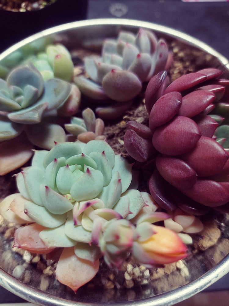 こちらの写真は、もちろん寄せ植えではないのですが、購入した多肉くんたちを一時的に泊めているホテル代わりです。ほったらかしで、多肉くんたちを毎日出張中👔にしていて申し訳なかったです。