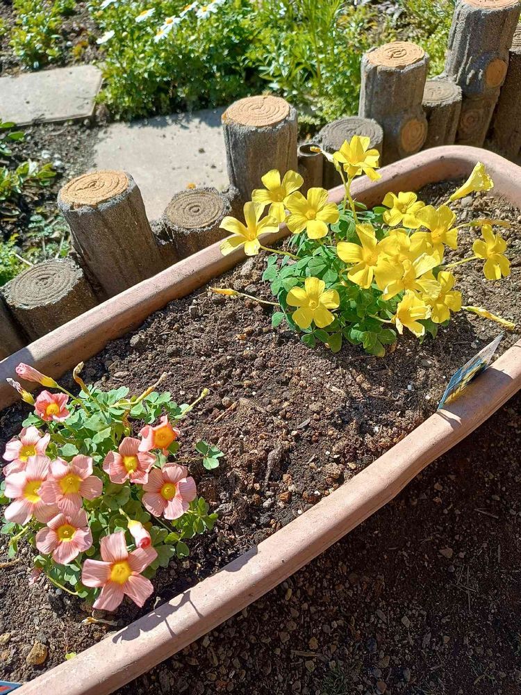 日差しを浴びて開いたオキザリスコモサにニッコリしています😁🎶
