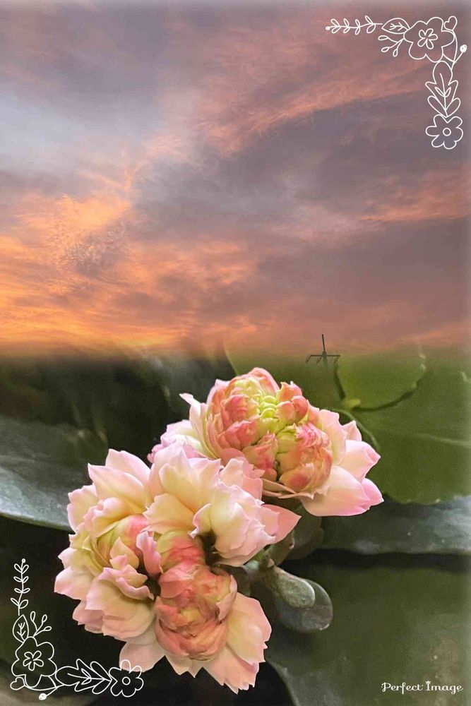 ピンク色の空とピンク色の可愛いカランコエさんでスタートですね🥰