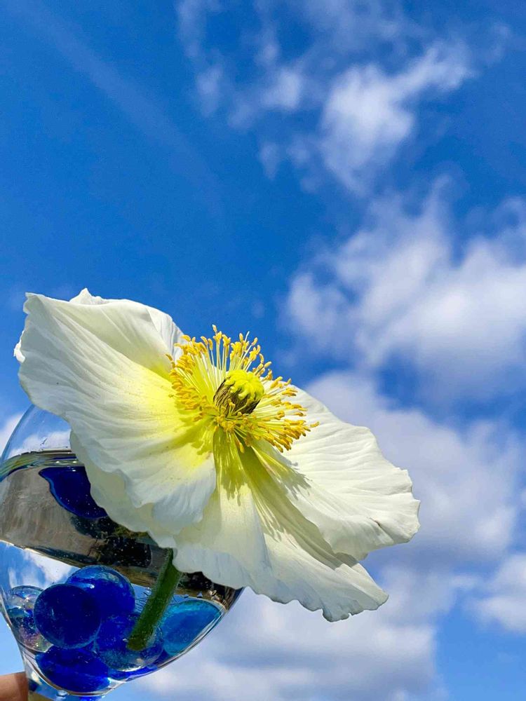 わぁっ〜青空にポピーさん🥰💙🤍💙