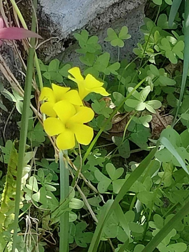 いまはながさいてきてます葉っぱはクローバのような感じです
