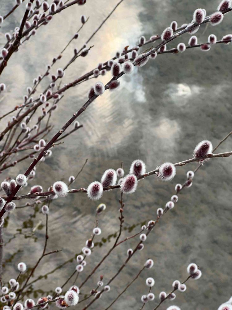 ピンクネコヤナギはタキイの(花と野菜ガイド)で見た事有りますが 本物のピンクネコヤナギは初めて見ました。ほんのりピンクです。春ですね。
