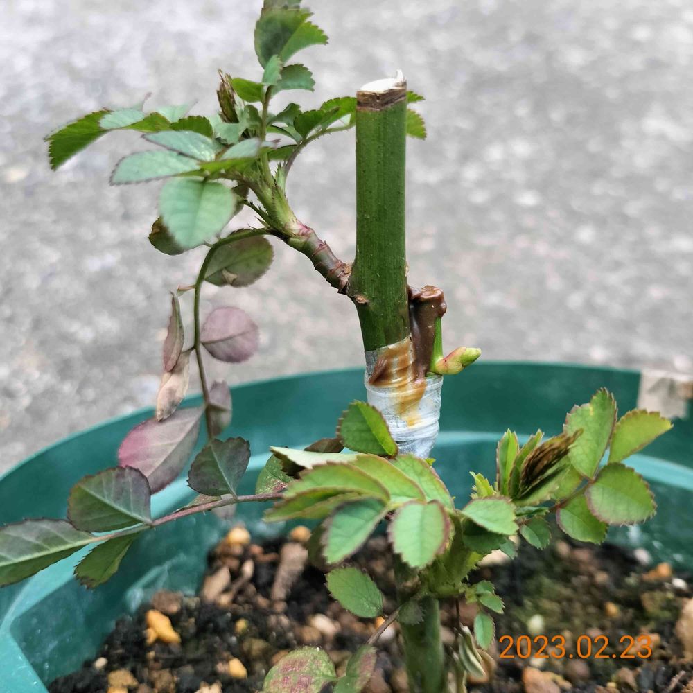 ミニツルバラ 〃 群舞 〃 の切り接ぎ ( より正確には、デービッド接ぎの初心者型 笑 )