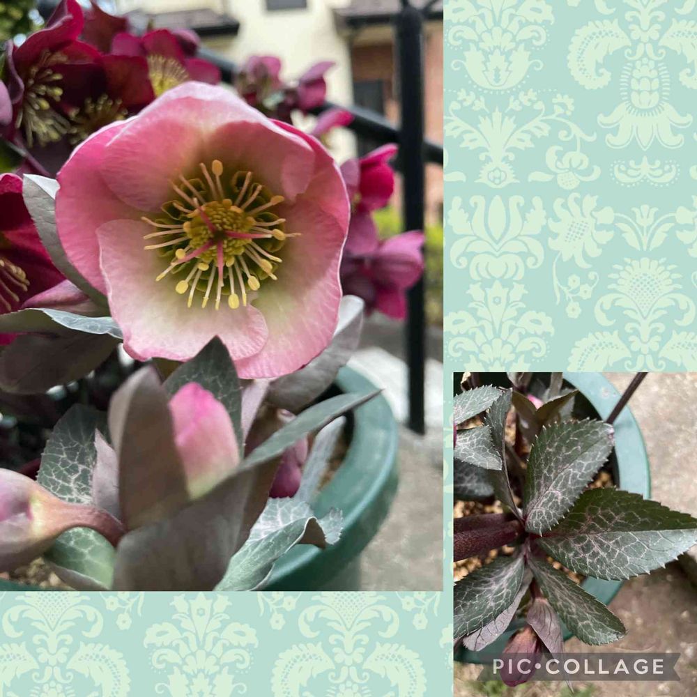 優しいピンクのややカップ咲きで、氷の薔薇に比べて、やや遅咲きで、漸く一番花が咲きました😊 そしてこのクリローの大きな特徴は葉っぱが大理石のようで、とても美しいです🤗