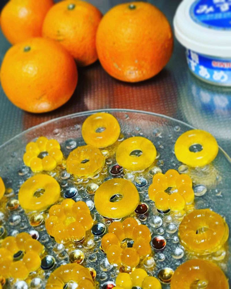 タンカン🍊は、皮が固くなっても中身はジューシーなので、果汁でグミもイケルかもと、今回初めて作ってみましたー👌ばっちり💕