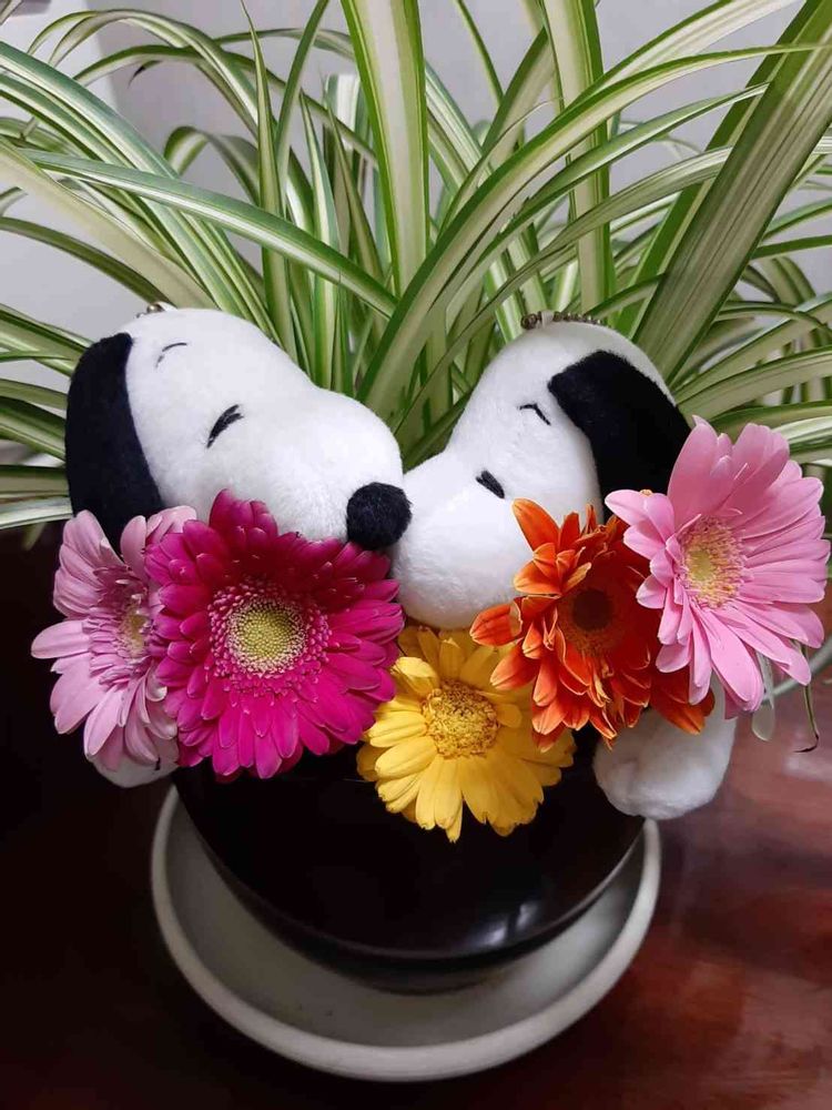 さん、ガーベラもスヌーピーたちもkawaii💕