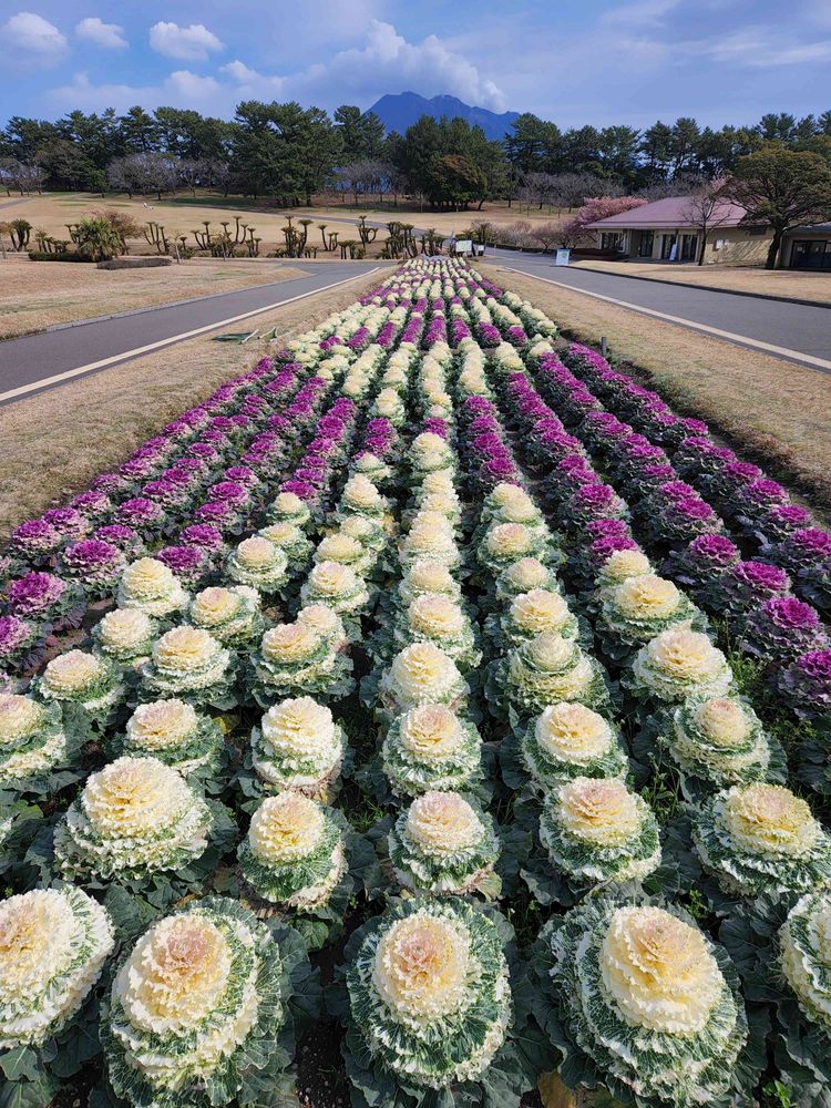県立吉野公園内を入り口からしばらく歩く🚶と、葉牡丹のなが~い花壇が目に入ってきました。圧巻でした👀👍✨️💖