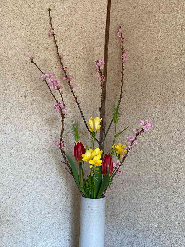 家の一角に春の気配と香りが漂う素敵な生け花ですね〜🌸✨