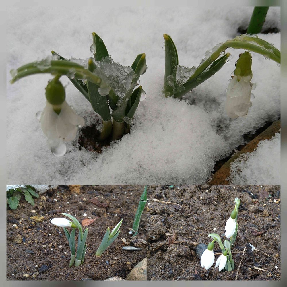 先週には雪⛄も溶け始め、咲きはじめたスノードロップですが、今日は朝からまた雪です🌨️