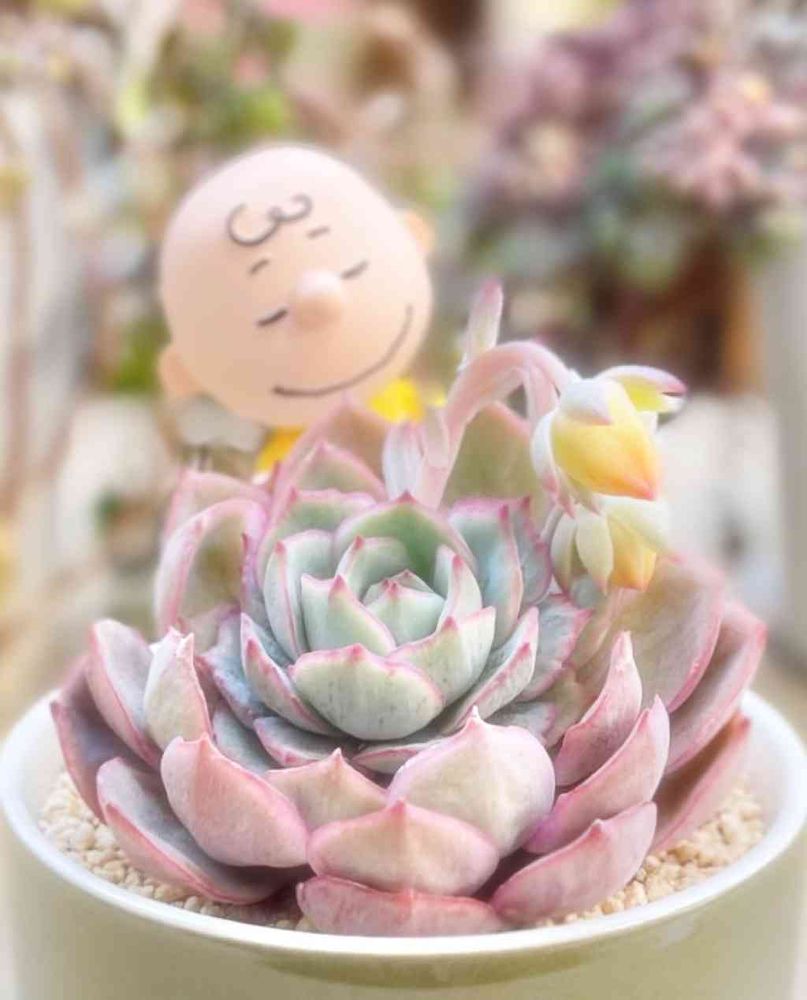 チャリーブラウンの顔が植物に癒されてる笑顔でかわいい💕