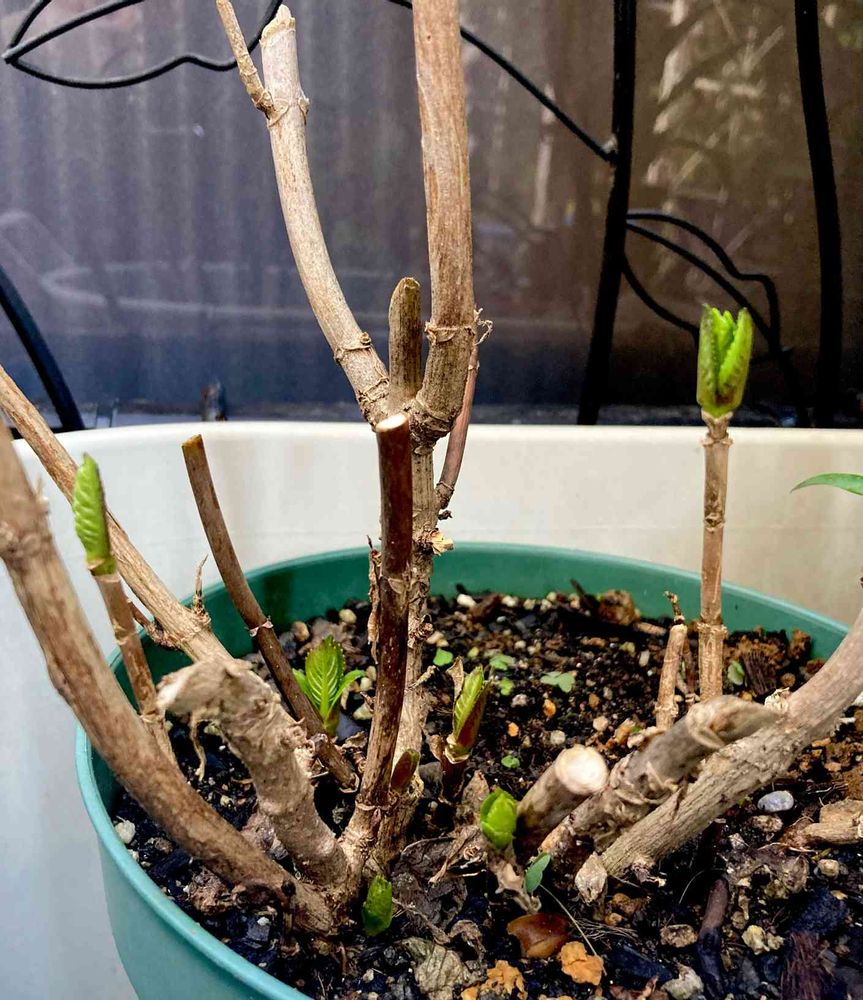 まつひめさんの小さな庭,紫陽花の新芽の投稿画像