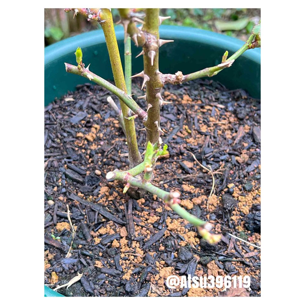 丸坊主にした薔薇🌹からも新芽🌱