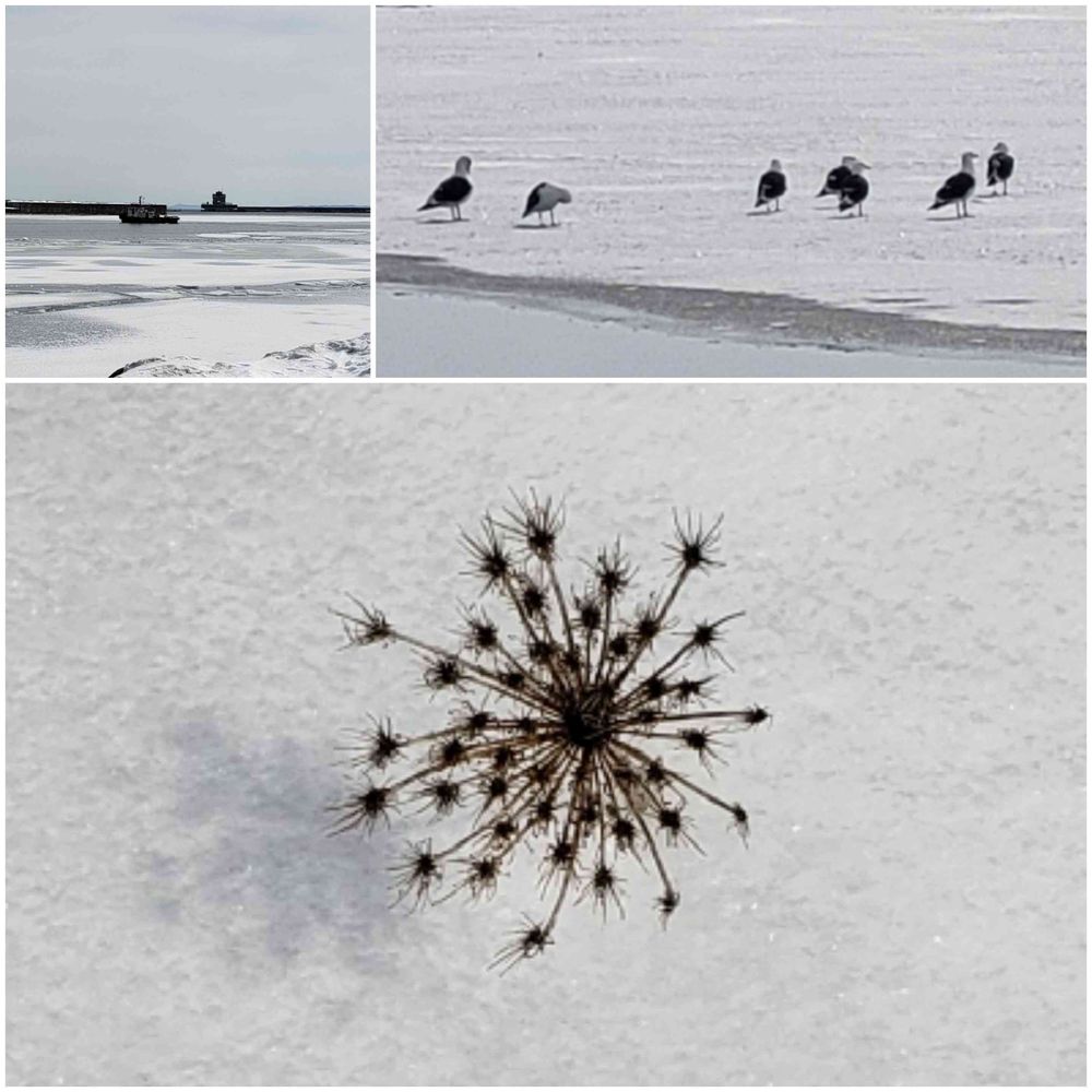 春めく列島のオホーツクを臨む港の路肩にポツンと線香花火🎇
