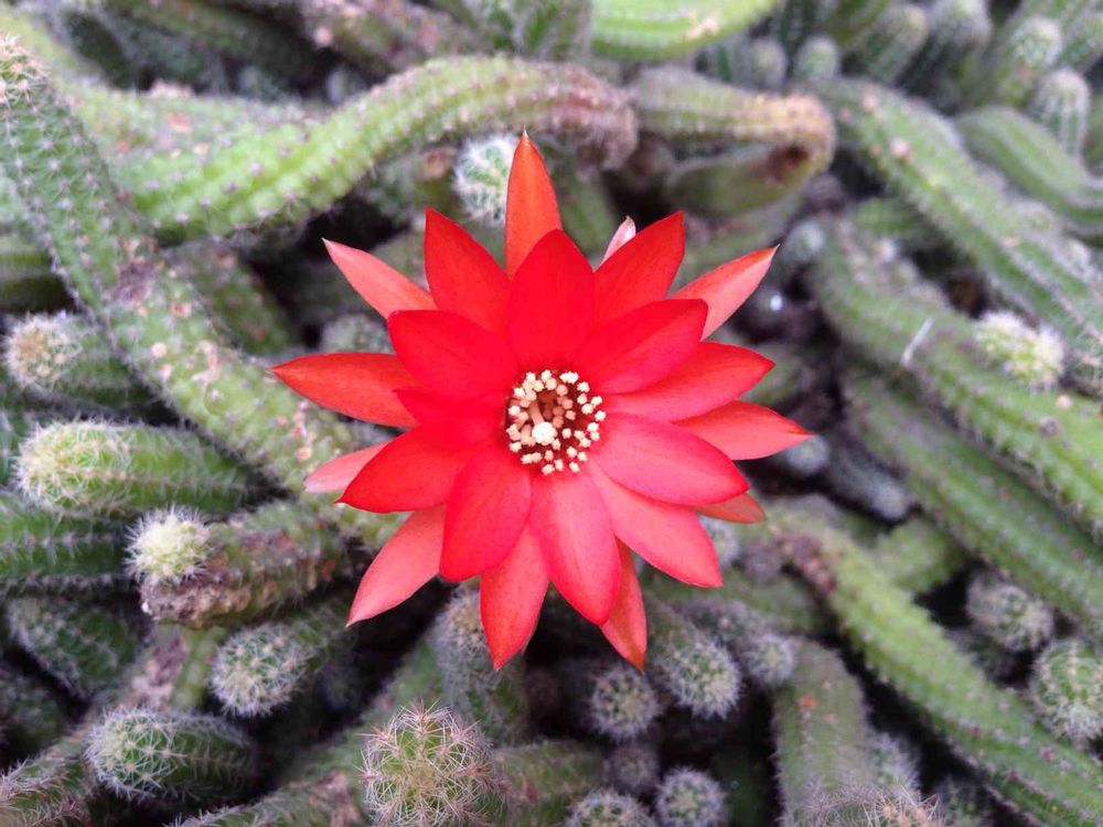 紐サボテンの花のアップです。