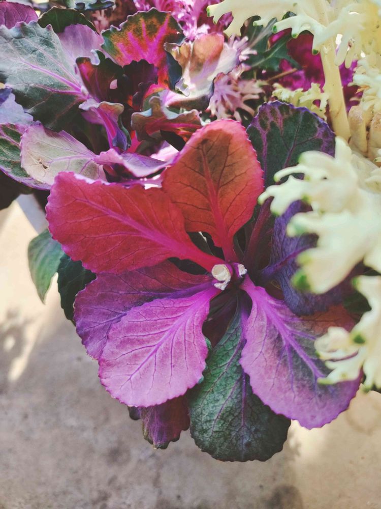他の葉牡丹も今見頃✨ 星型でつやつやの、クリスマス寄植えに入れていたミニ葉牡丹は、真ん中が伸びず綺麗な形のままです。また、写真アップします⭐