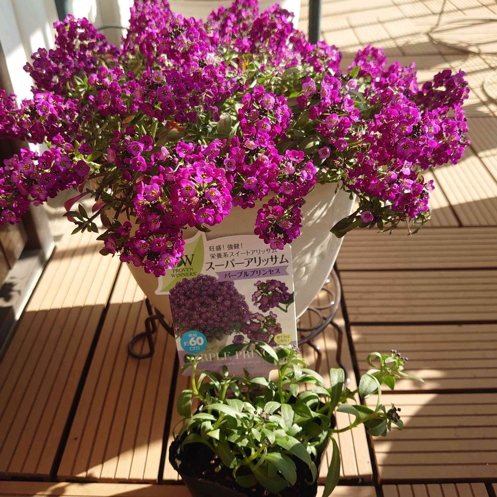 PW.ハクサン様より秋のアンバサダーで10月に頂いたスーパーアリッサムパープルプリンセスの春の苗が用意できたのでと苗が届きました💜
