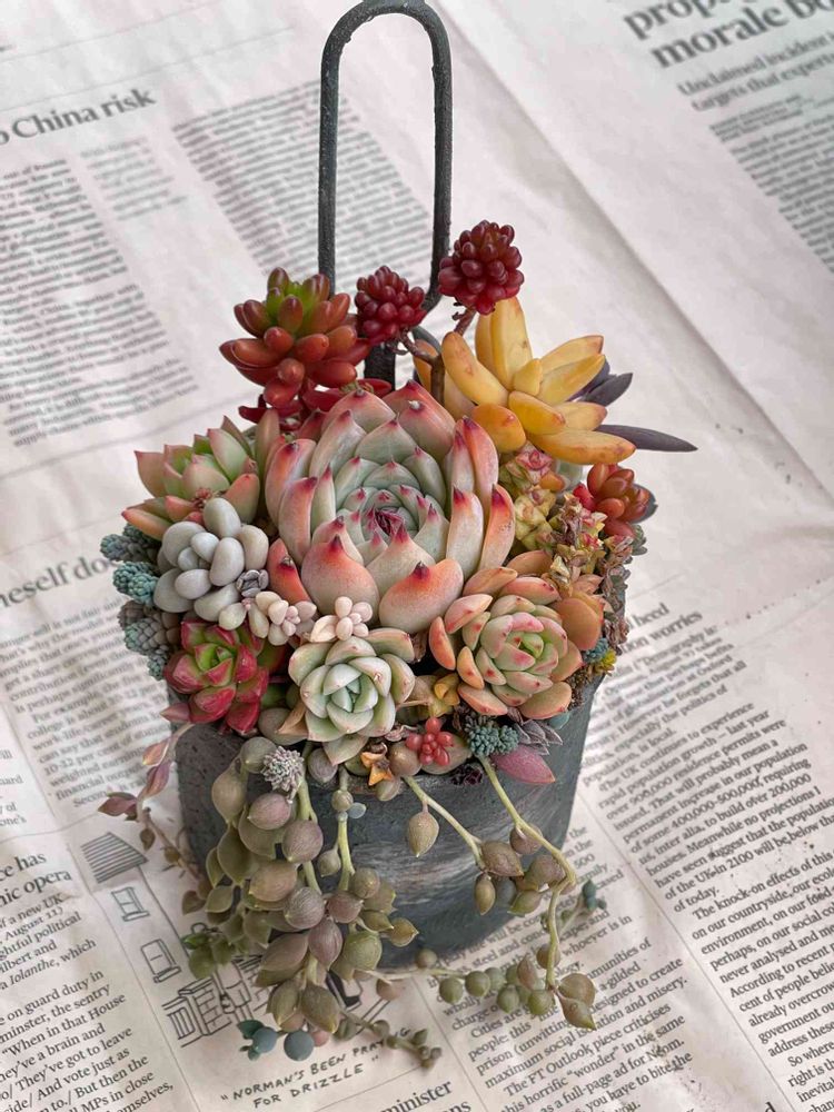 今の季節に寄せ植えするなら、秋までに肥料分が切れるような用土で寄せて秋までは育てて冬に可愛い色付きを楽しむのもありですよ〜✨