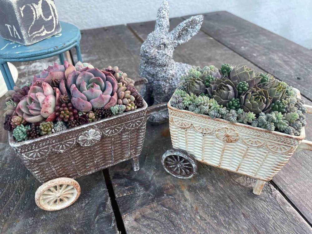 植えている多肉さんのcolorも、それぞれのワゴン合った可愛いさ😍