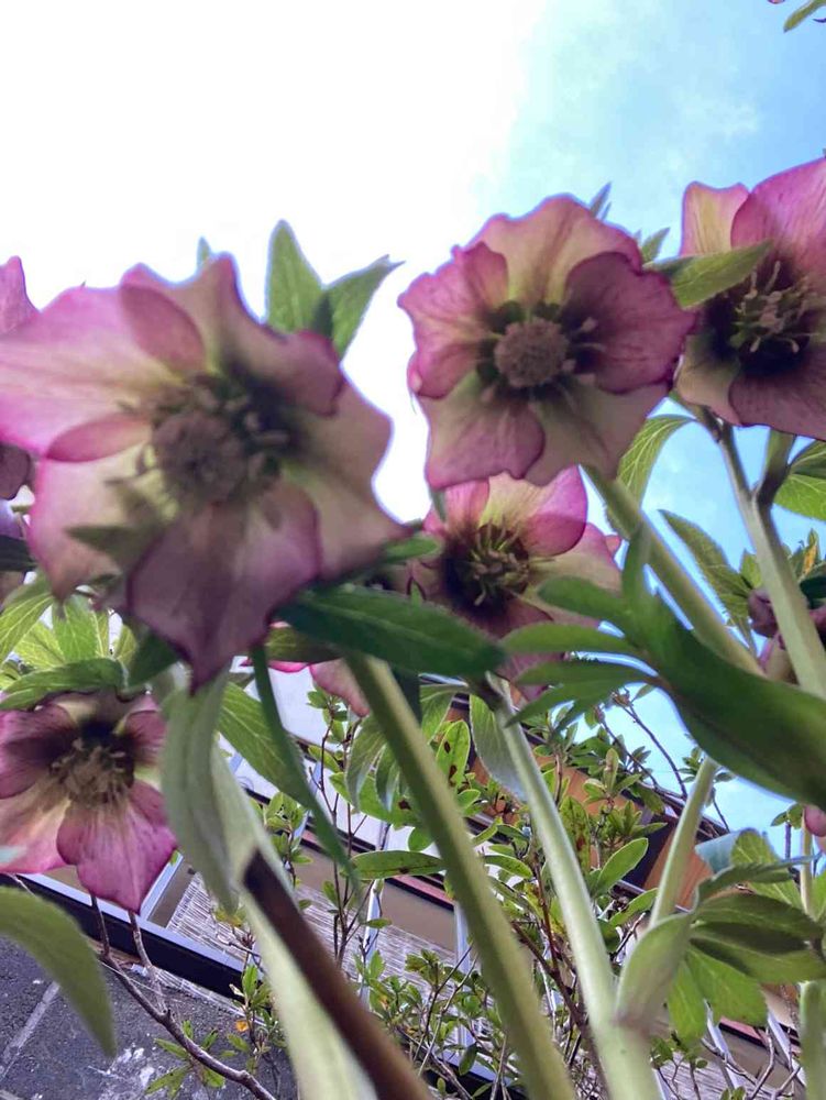 カメラマン📸泣かせのクリスマスローズ😖😖。切り花にして、高い所に飾ってほしいのかしら⁉️🤣、