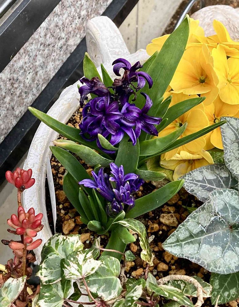 寄せ植えの中の植えっぱなしのヒアシンスが咲きました*\(^o^)/*💜