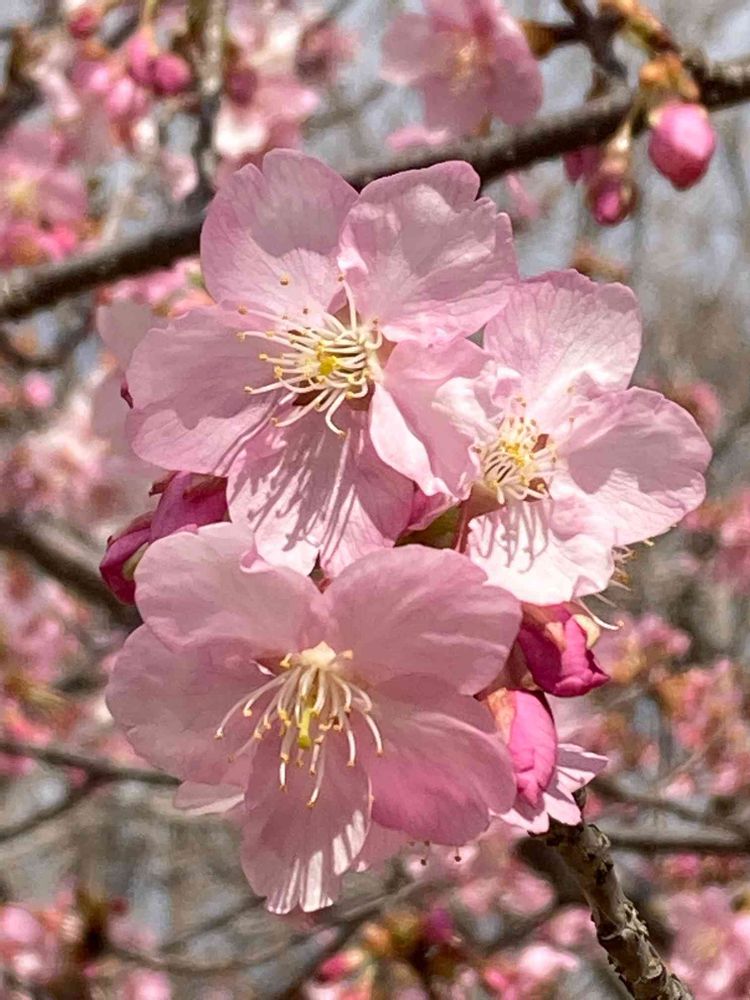 春を思わせる暖かな昨日、河津桜が3分咲きでした😊