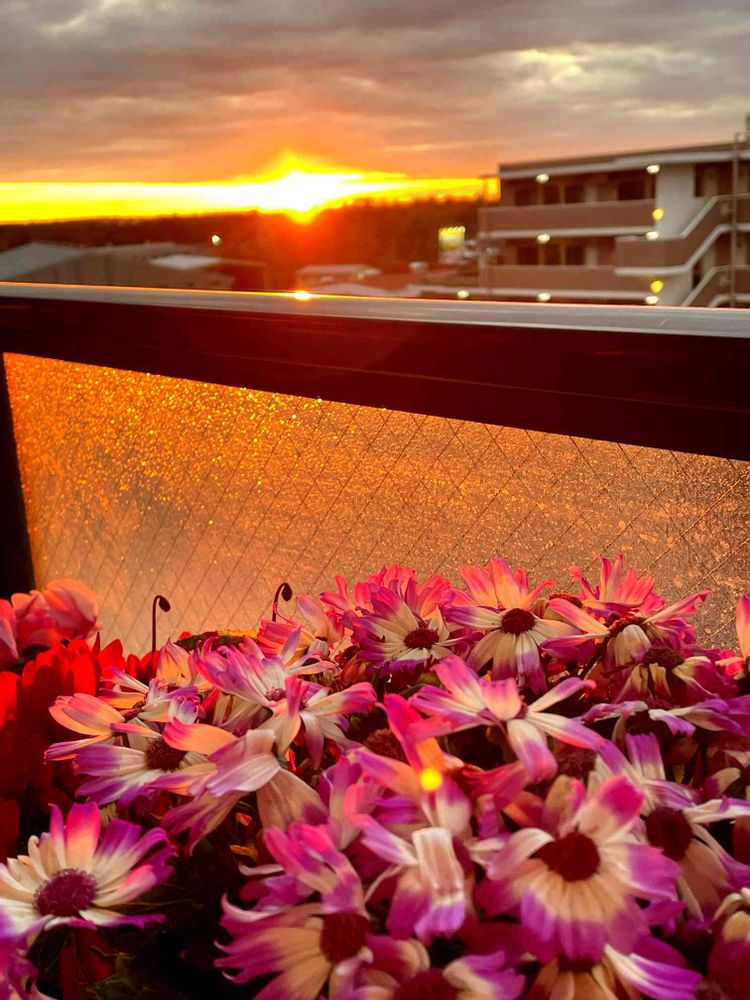 朝陽を浴びて、赤い光が溢れてる❤️