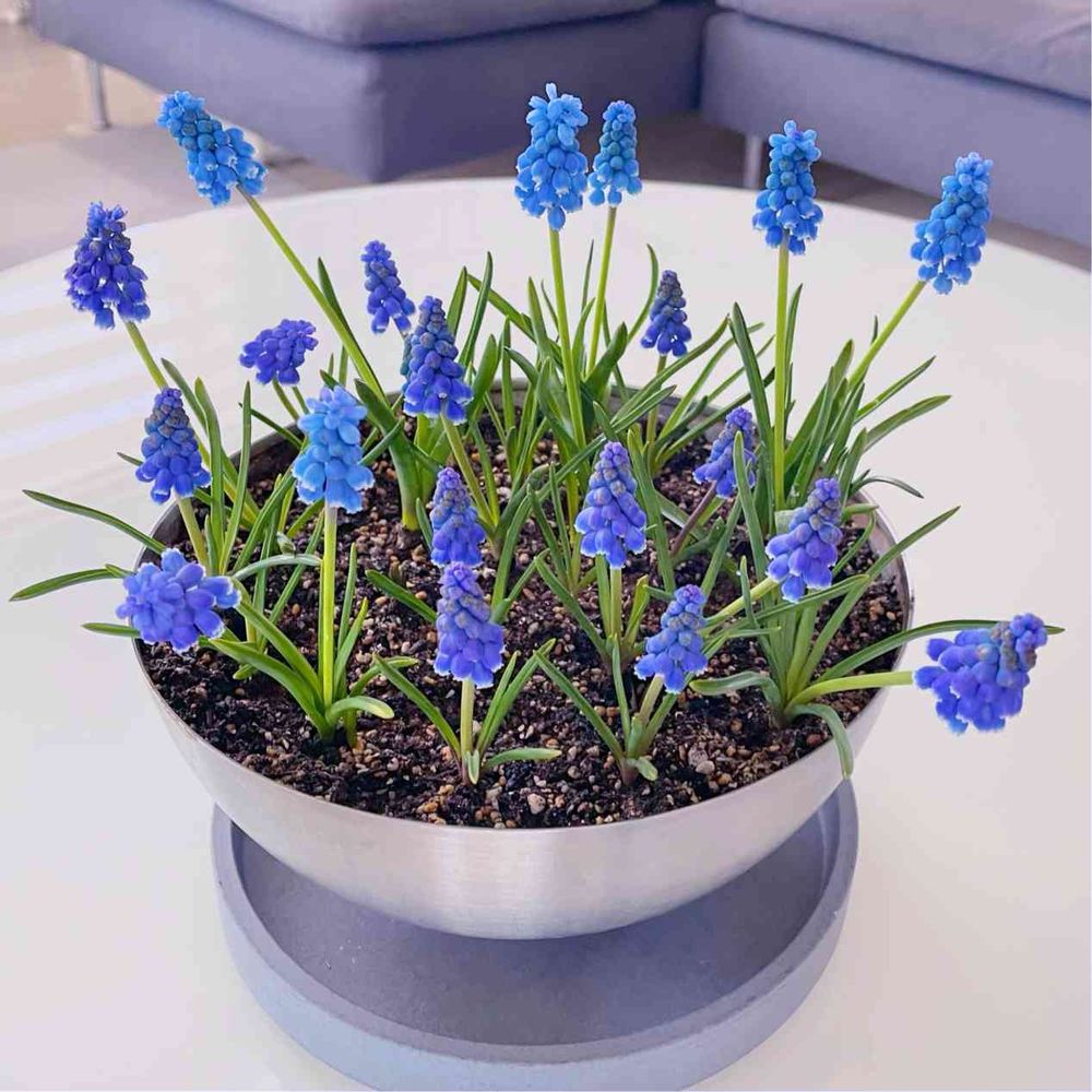 私もオーソドックスな紫がかった青がしっくりきます。種類の多いムスカリ。私もちょこちょこ植えてて、次の子もだいぶ育ってきましたよ🌱