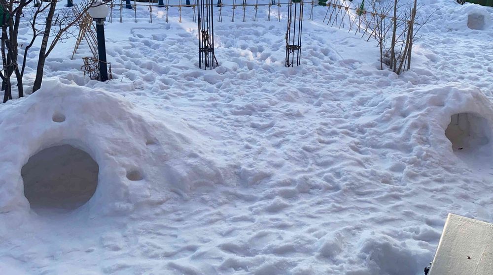 知り合いの子が遊びに来て、小さなかまくらを作ってました❄️