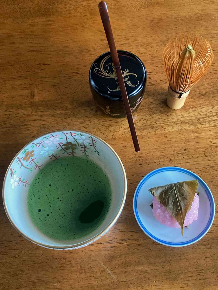 突然、お抹茶が飲みたい‼️と思ってしまい、飲みたくて飲みたくて居ても立っても居られなかったので、急遽桜餅を調達してきて美味しくいただきました😋✨