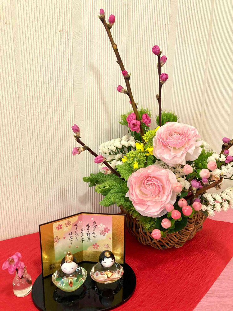 ももの節句🌸の今日のお花🌸🌸もも🌸🌸withお雛様🎎 です☺️