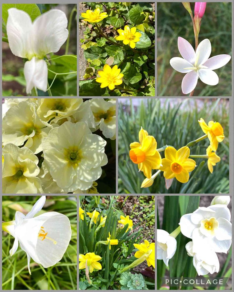 右下は房咲き水仙 シルバーチャイム清楚な白い水仙です。